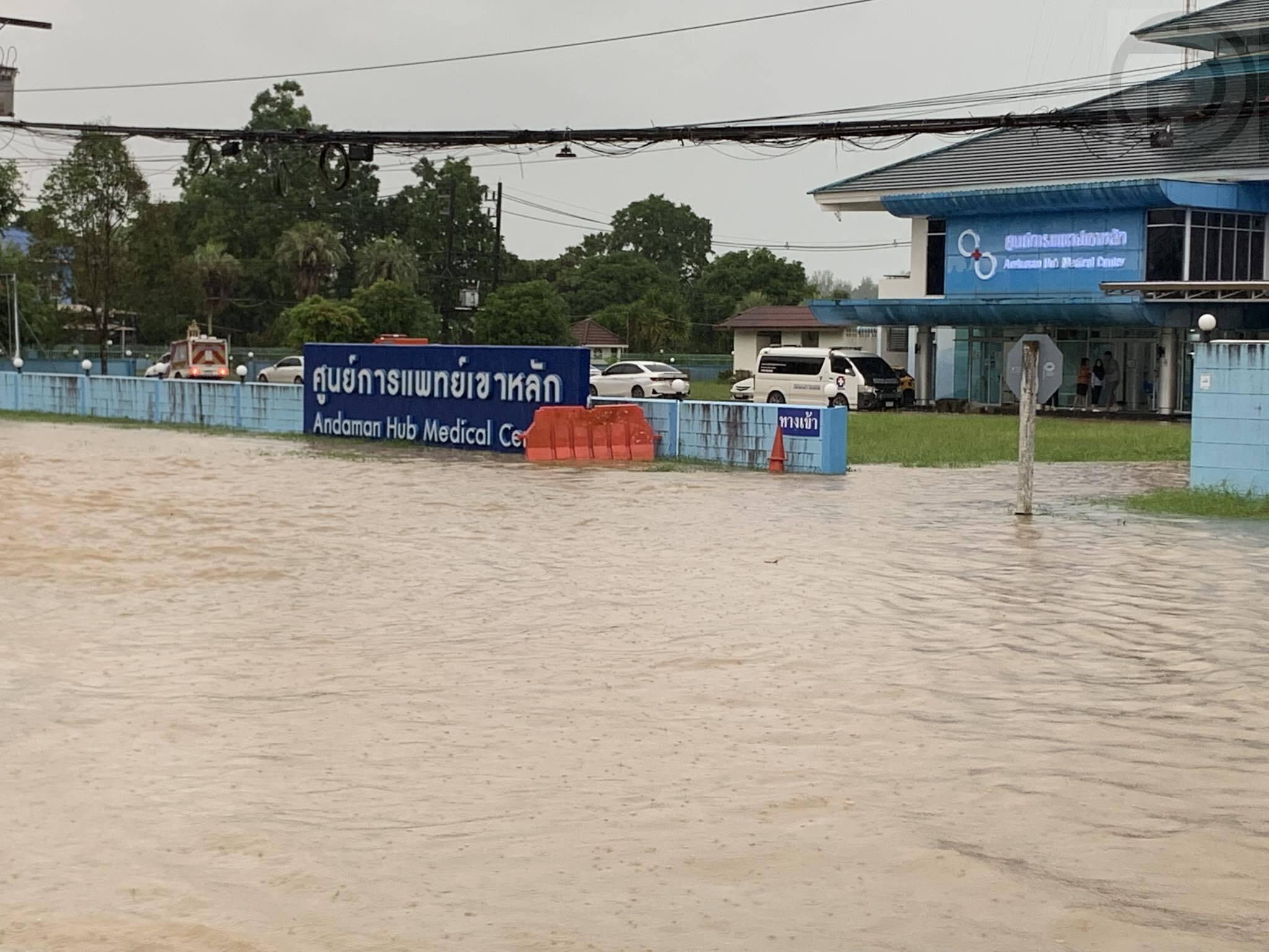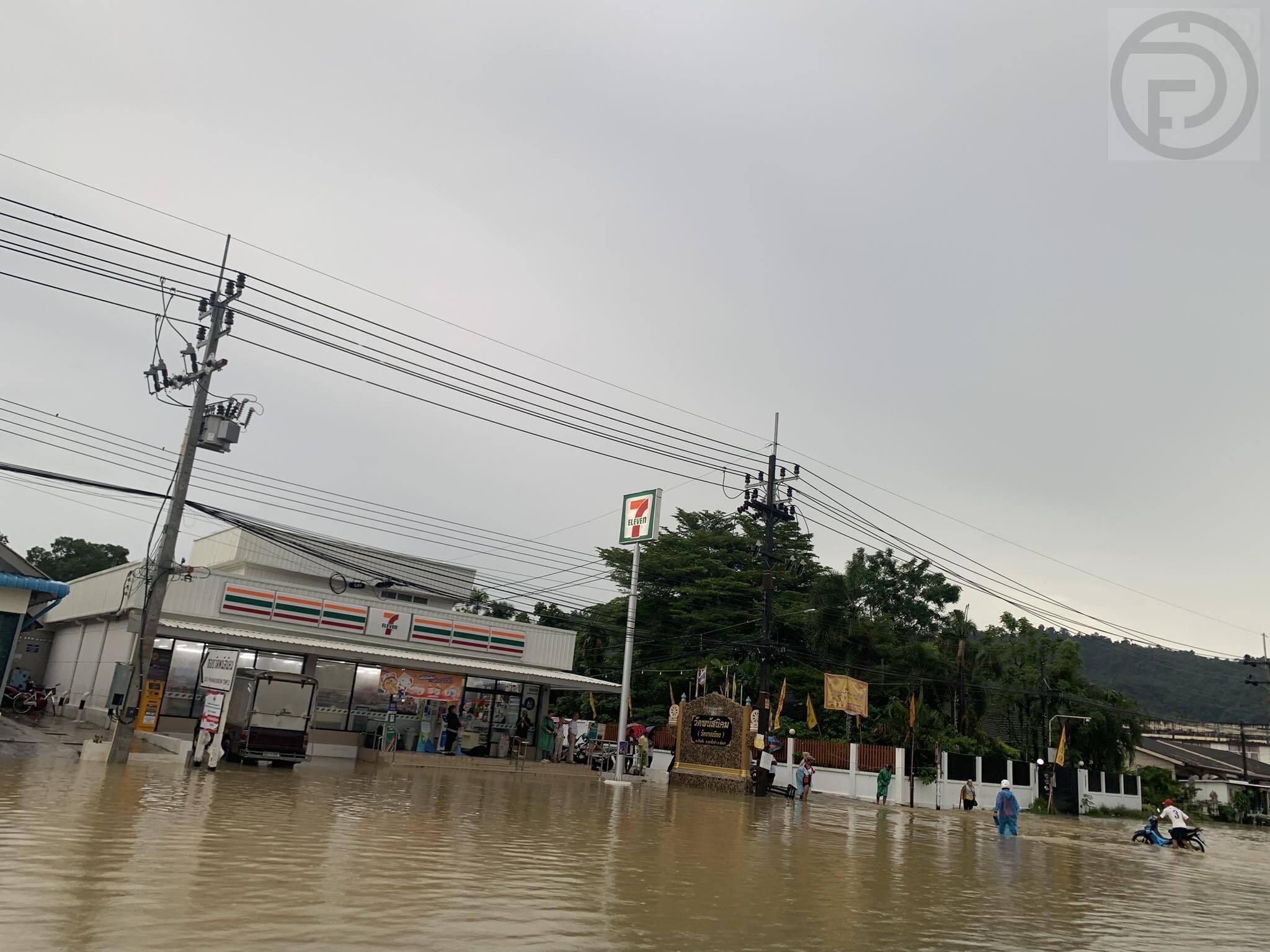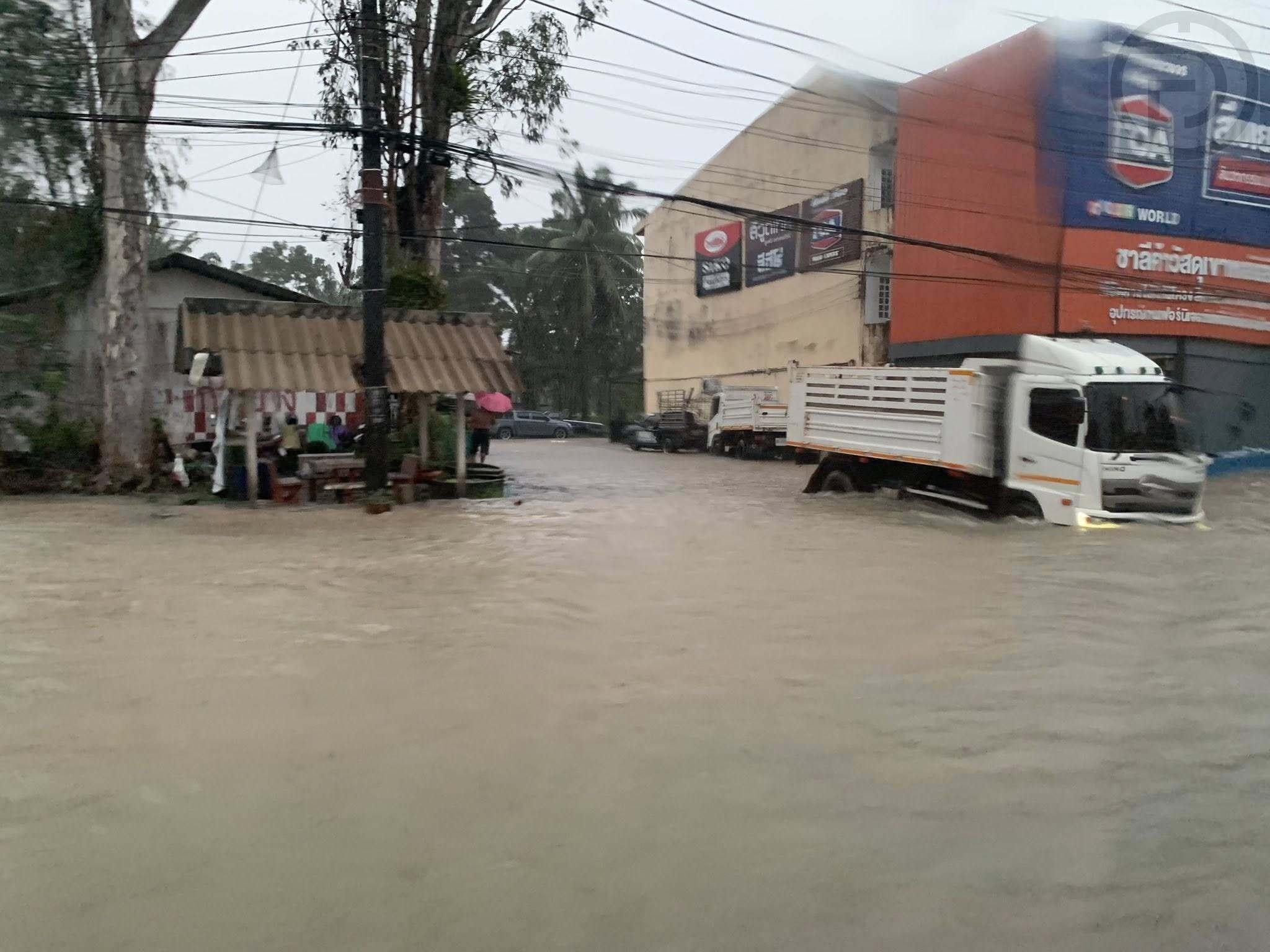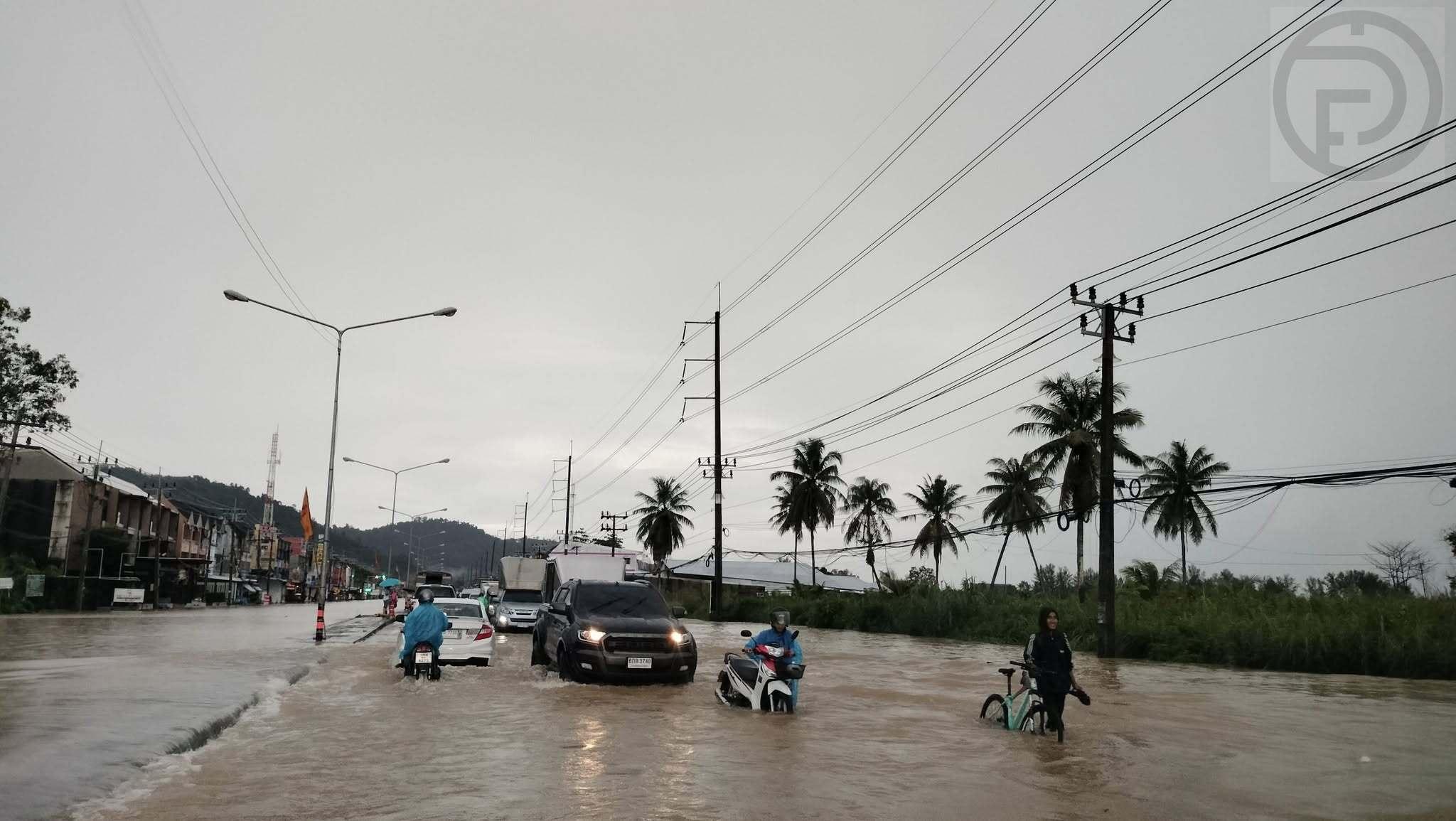 Le déluge a commencé vers 14 heures, heure locale, lorsque les eaux de ruissellement provenant des fortes pluies tombées dans la chaîne de montagnes de Khao Lak ont débordé dans les canaux locaux. Des témoins ont rapporté que l'eau avait pris une teinte rougeâtre et avait rapidement monté, finissant par déborder et inonder le centre commercial de Khao Lak. Les eaux ont recouvert les deux côtés de la route principale sur près de 800 mètres, immobilisant des véhicules et provoquant des embouteillages s'étendant sur près d'un kilomètre dans chaque direction.